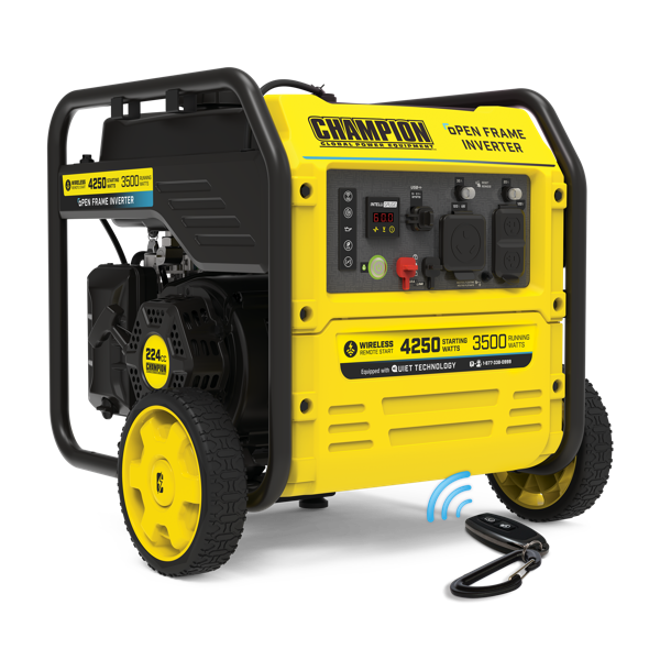 Our 4250-watt inverter generator with remote key fob allows you to start and stop your generator from up to 80 feet away. Champion’s RV Ready Open Frame Inverter is 50% quieter and 20% lighter than a traditional 3500-watt generator. Our advanced feature-packed power solution includes Quiet Technology, Extended Run Time, Economy Mode and Clean Power, plus you can easily increase your power with the optional Parallel Kit.