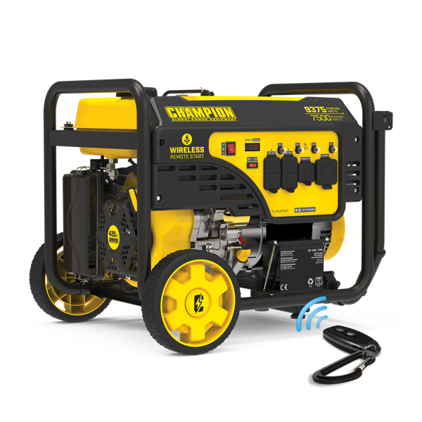 Our 7500-watt generator with remote key fob allows you to start and stop your generator from up to 80 feet away. The 420cc Champion engine with electric start and included battery has all the power you need for home backup during an outage or your next project.