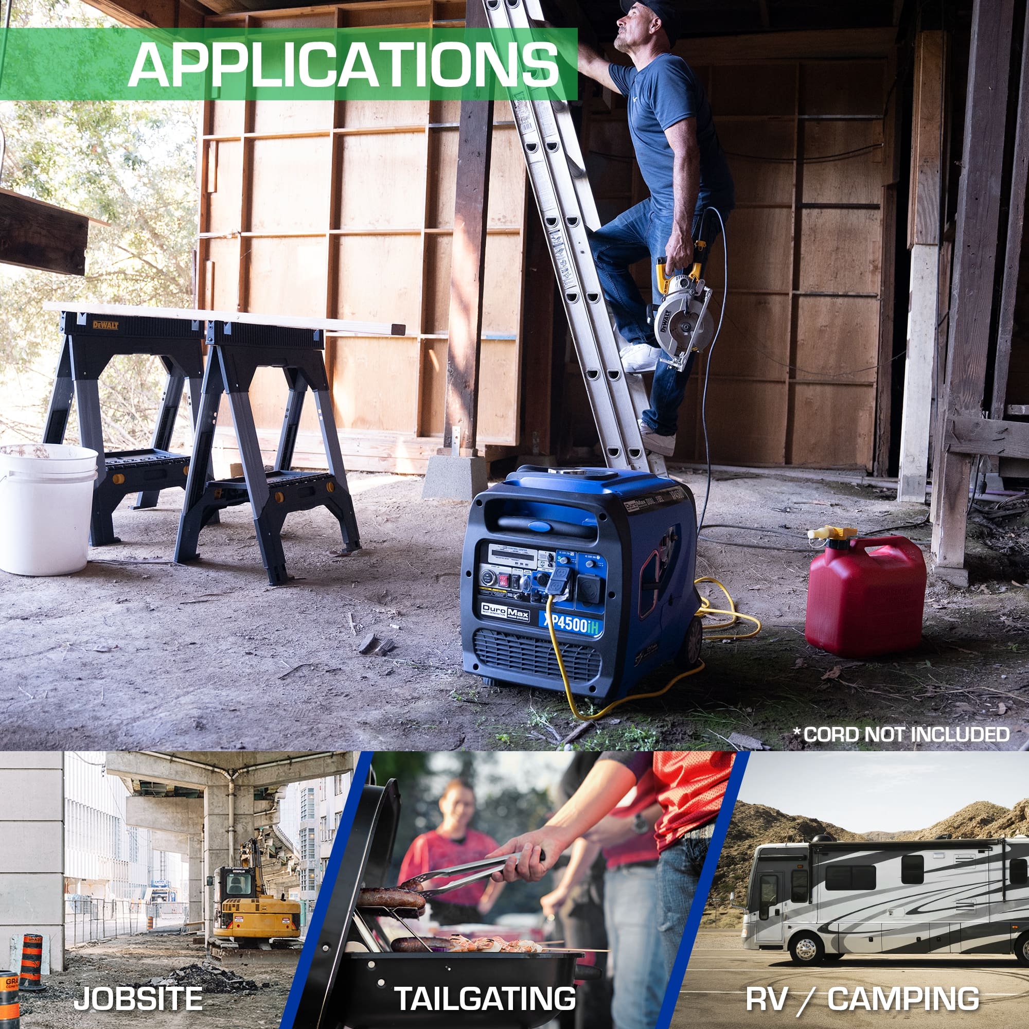 Power on the Go – With 4,500 peak watts and 3,600 running watts, this generator is perfect for emergency home power, jobsite use, or camping with your RV.