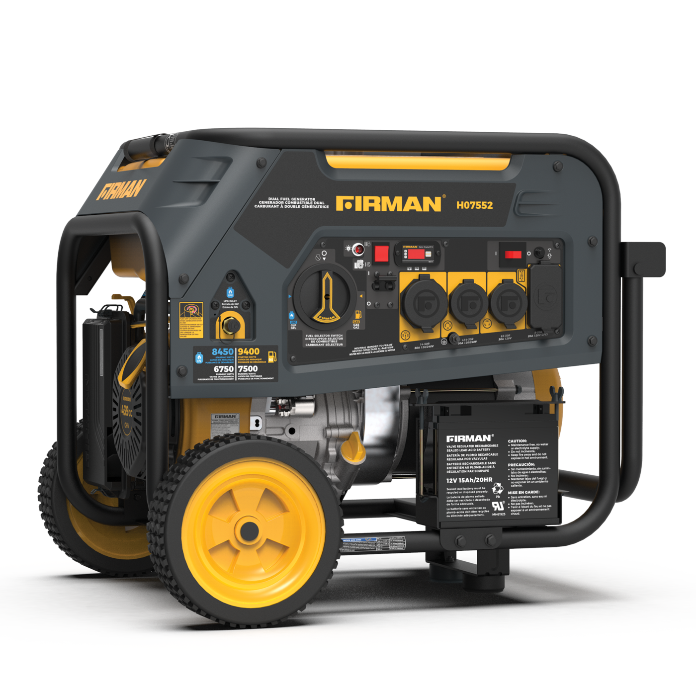 The H07552 Dual fuel generator can run on both Gas and Liquid Propane fuel, giving you flexibility during a storm, or when you’re on the job. This generator features 9,400 starting watts and 7,500 running watts (8,450/6,750 LPG) with an electric start, for ease of use. The H07552 is backed by our 3 Year Limited Warranty.